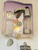 Elevate your baking game with the Wilton Preferred Press Cookie Press. This versatile and easy-to-use cookie press allows you to create an array of beautifully shaped cookies effortlessly. Conditioned as "New," this cookie press guarantees a flawless baking experience. Although the original box may be damaged, the product inside remains in perfect condition. With a wide range of design discs included, you can unleash your creativity and produce stunning cookies for any occasion. Whether you're a baking enthusiast or a beginner, the Wilton Preferred Press Cookie Press is a must-have tool for your kitchen. Bring joy and delicious treats to your loved ones with this high-quality cookie press.